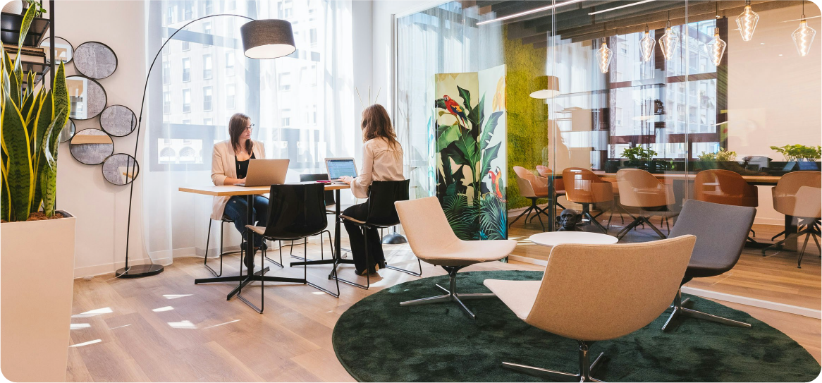 - Private offices, coworking and meeting rooms